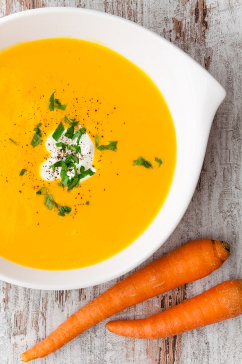 - Sirve la crema caliente y disfruta de la cremosidad y el sabor tropical del coco en combinación con la zanahoria.