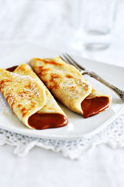 Estas crepes son ideales con dulce de leche. El dulce de leche en Argentina está en todas partes, es como la crema pastelera y es el último recurso para los más golosos: ¡abrir el frigorífico y a comerlo a cucharadas!