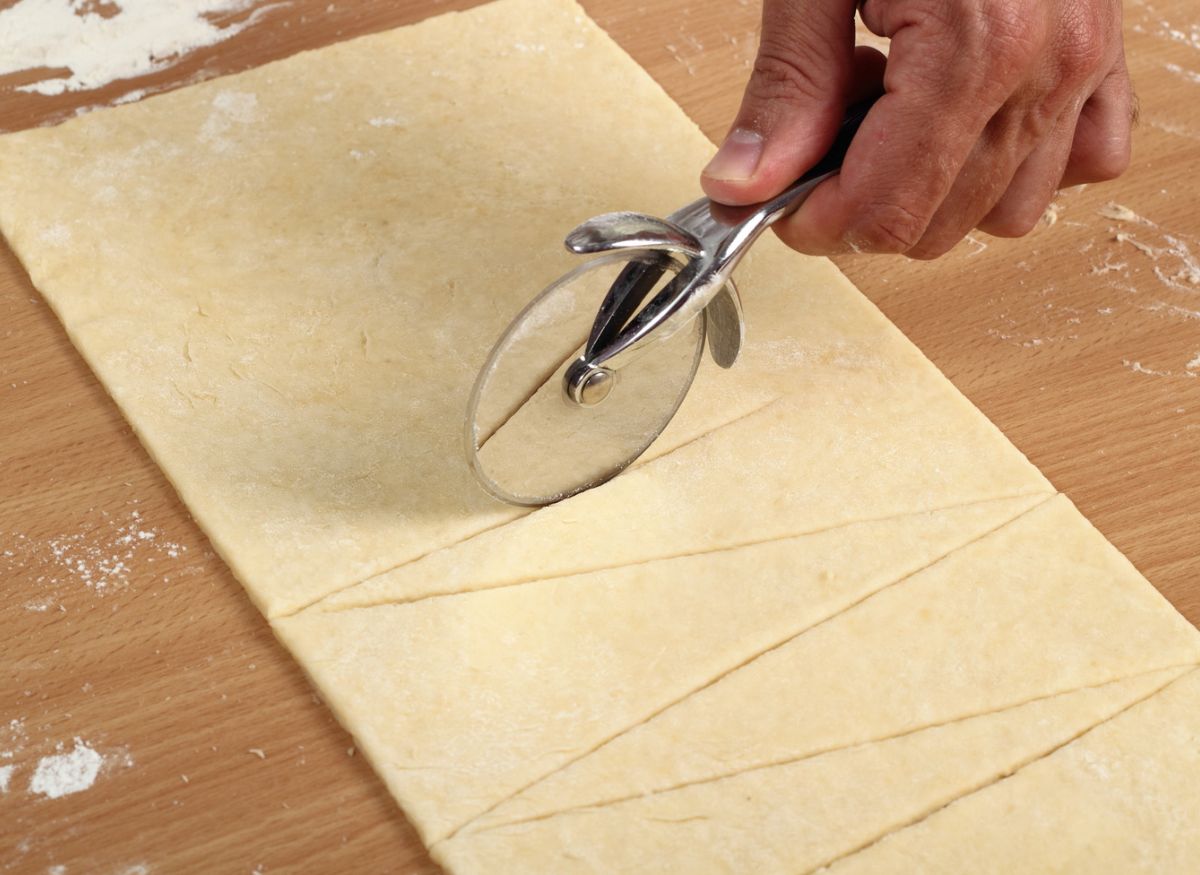 Cortamos los triángulos de hojaldre