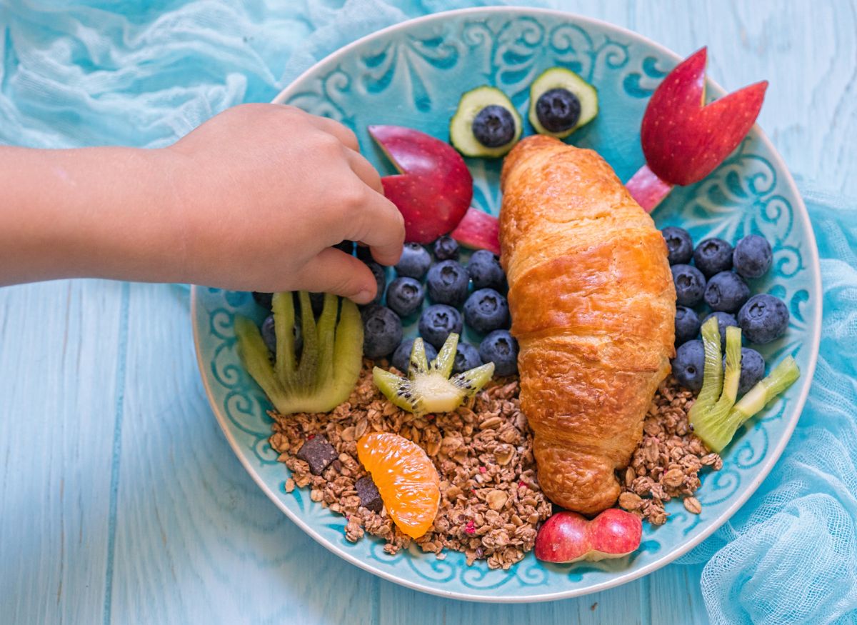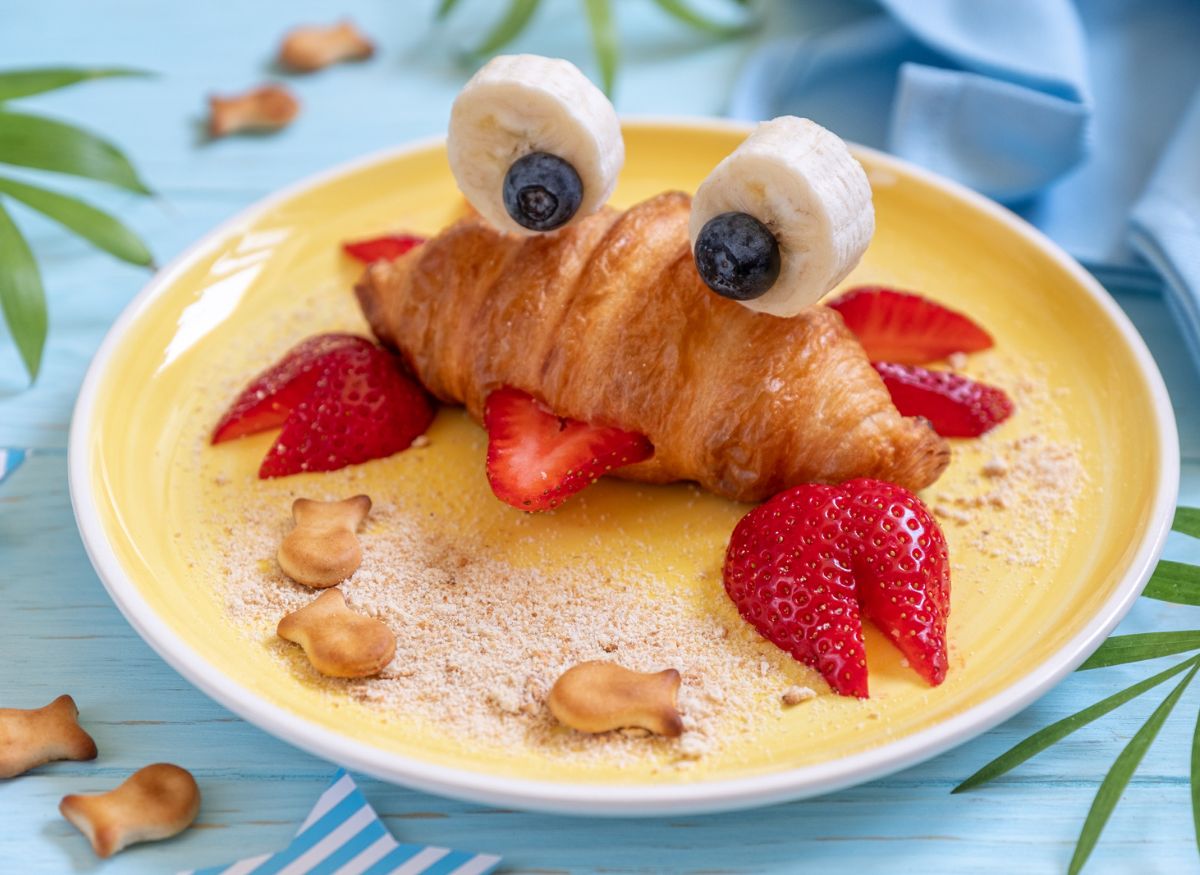 Y si son croissants para niños podéis acompañarlos con frutas ¡mira estos qué divertidos!