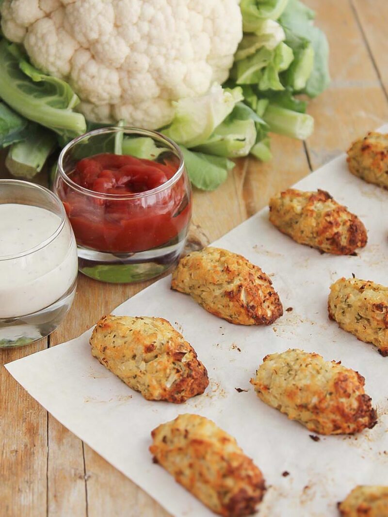 Hemos comido estas croquetas de coliflor caseras para cenar y las hemos servido con una salsa de yogur y menta, igual que las tortitas de calabacín. Pero también puedes acompañarlas de una salsa de yogur y curry o un poco de kétchup.