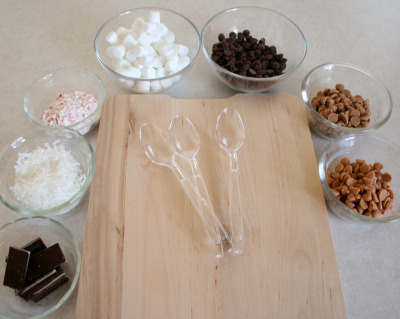 Coloca el plato con las cucharas en la nevera y deja que se endurezcan (alrededor de 15-20 minutos). Luego sólo tienes que introducir las cucharas de chocolate en una taza de chocolate caliente. Mmmmm….. están deliciosas… (vale, sí, las he probado un poquito ;)…