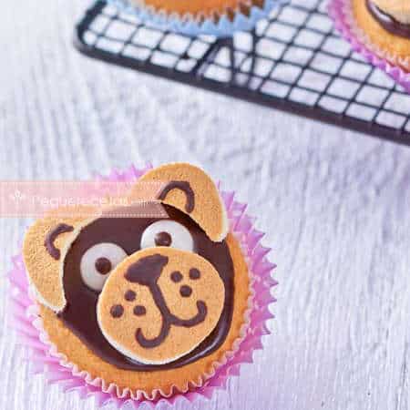 La decoración es fundamental sobre todo para un cumpleaños infantil. Sobre unos cupcakes básicos puedes colocar chocolate fundido y galletas y crear algo tan bonito como el manjar de la imagen.
