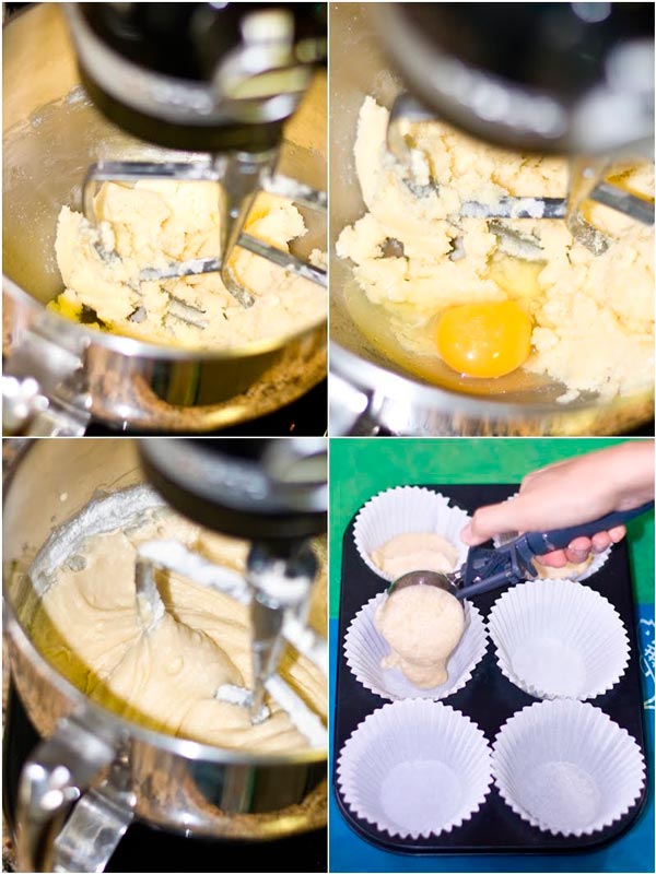 En una batidora mezclar la mantequilla y el azúcar hasta acremar, añadir la esencia de vainilla e incorporar los huevos uno a uno integrando completamente antes de agregar el siguiente.