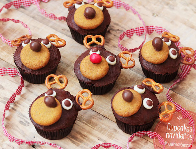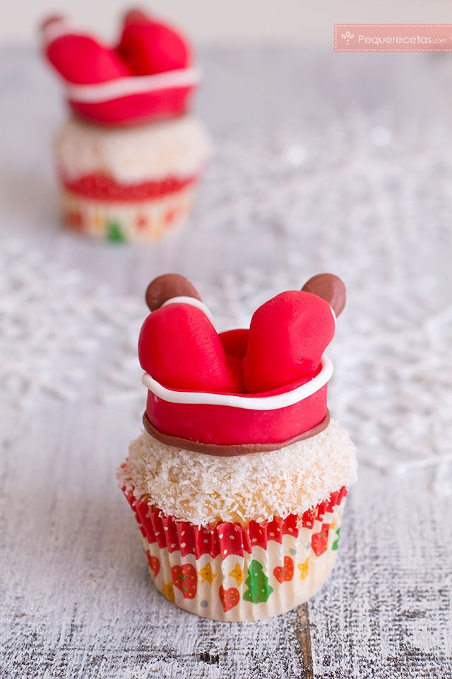 Otra idea divertida, donde tendréis que modelar un poco con fondant. Es una buena idea para que os ayuden los peques, ¿verdad? La explicación paso a paso con fotos la tenéis aquí: CUPCAKES DE PAPÁ NOEL