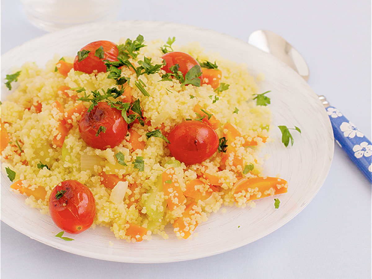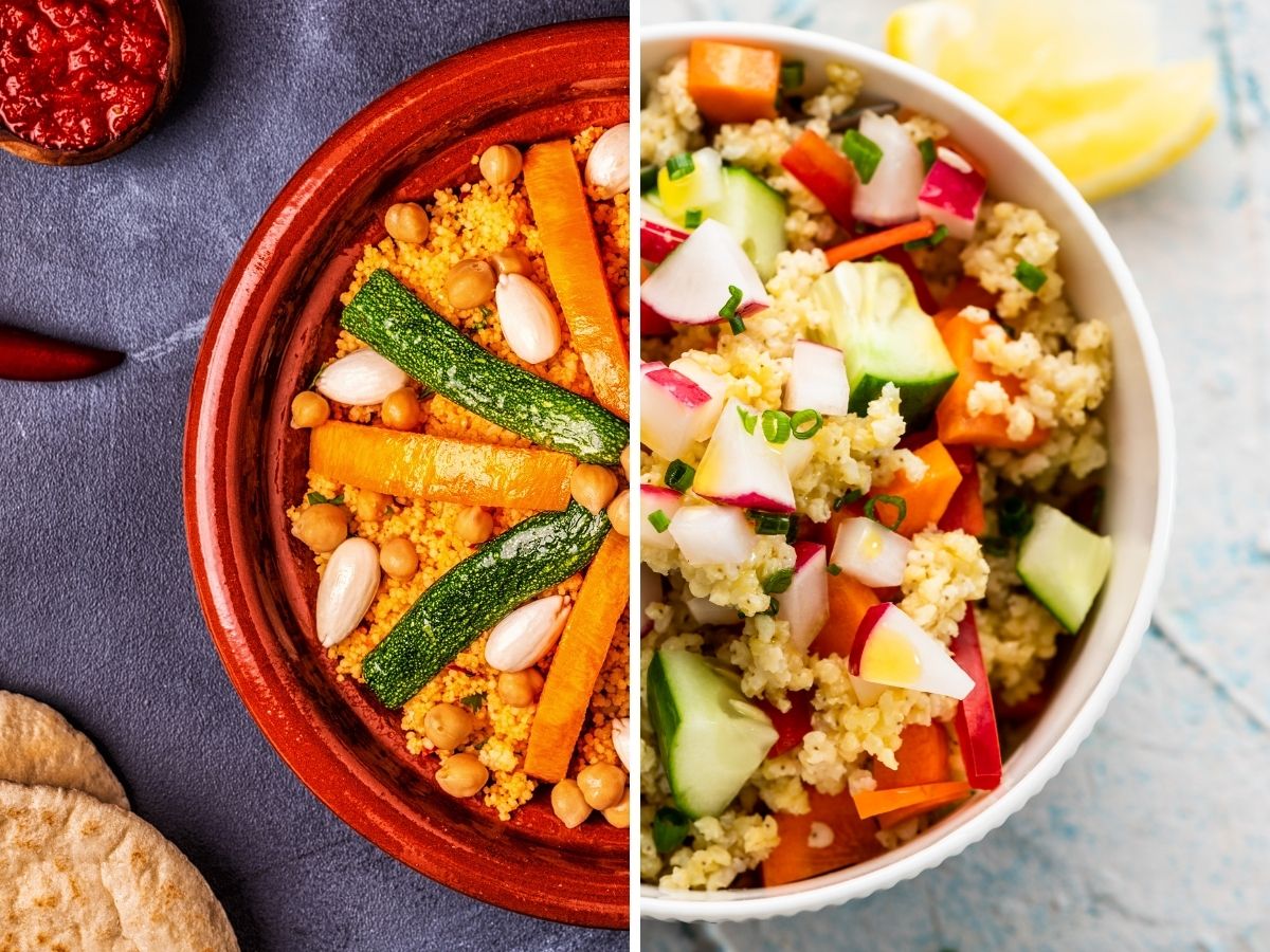 El cuscús marroquí está lleno de sabores exóticos que te llevarán directamente a Marruecos. Te traemos dos recetas tradicionales: cuscús con verduras y garbanzos, y cuscús con especias y frutas secas. Puedes ver las dos recetas detalladas aquí: