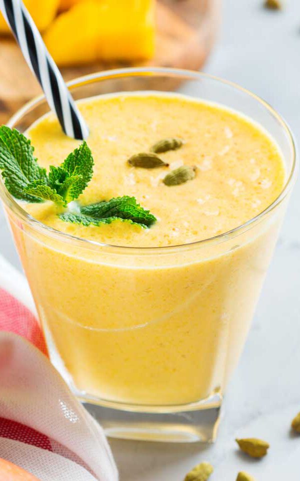 Ingredientes (2 copas): 100 ml de zumo de lima recién exprimido; 1 mango fresco; 2 cucharadas de azúcar; 1 taza de hielo picado.