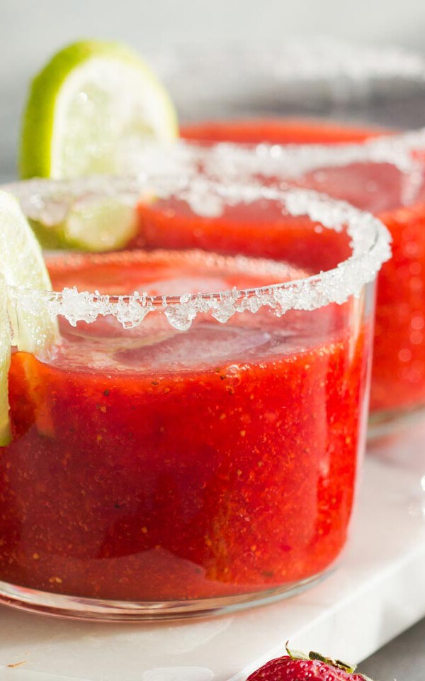 Ingredientes (2 copas): 14 fresas; 100 ml de zumo de lima recién exprimido (4-6 limas); 1 taza de hielo picado; 2 cucharadas de azúcar.