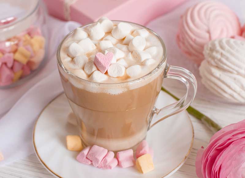 Y si no te atreves o no tienes espumador de leche, puedes optar por poner unas nubes de azúcar o marshmallows en forma de corazón (puedes comprarlos aquí) ¡un desayuno dulce y romántico!