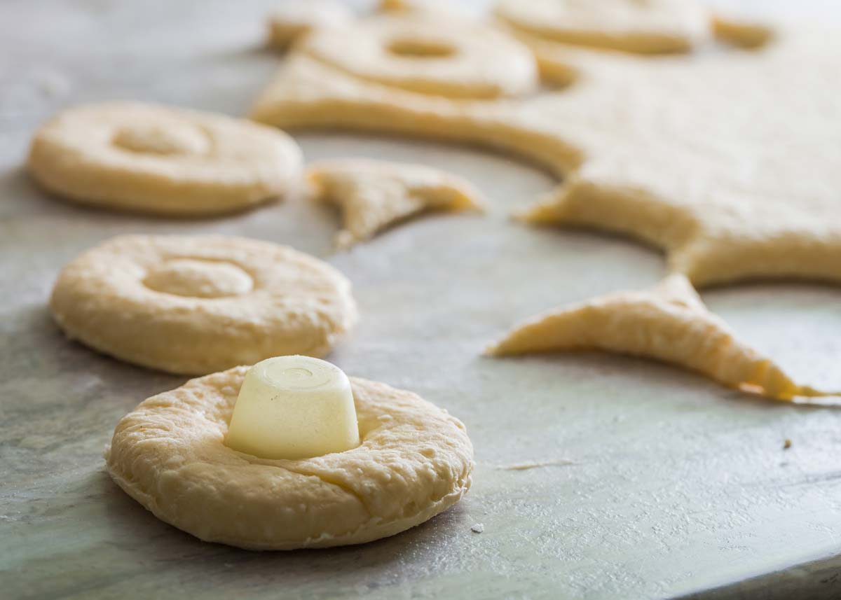 - Se forman los donuts con un cortapastas de 8 cm de diámetro (si no tenéis podéis hacerlo con un vaso)