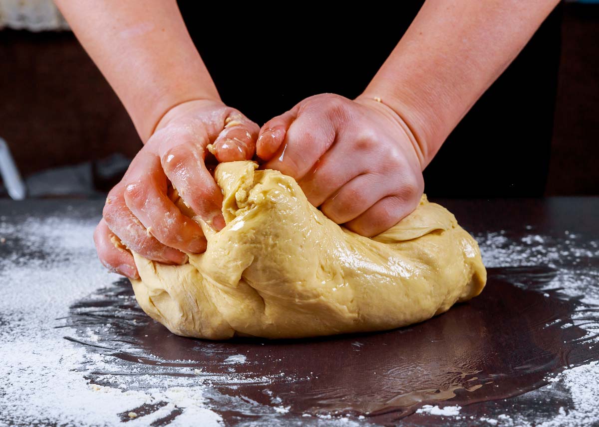 - Amasamos con las manos durante unos 10 minutos aproximadamente hasta conseguir que quede una masa elástica, blanda y suave.