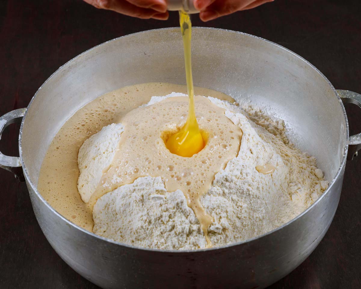 - Se van mezclando los líquidos del centro con una cuchara de madera o con las manos hasta que esté toda la harina integrada.