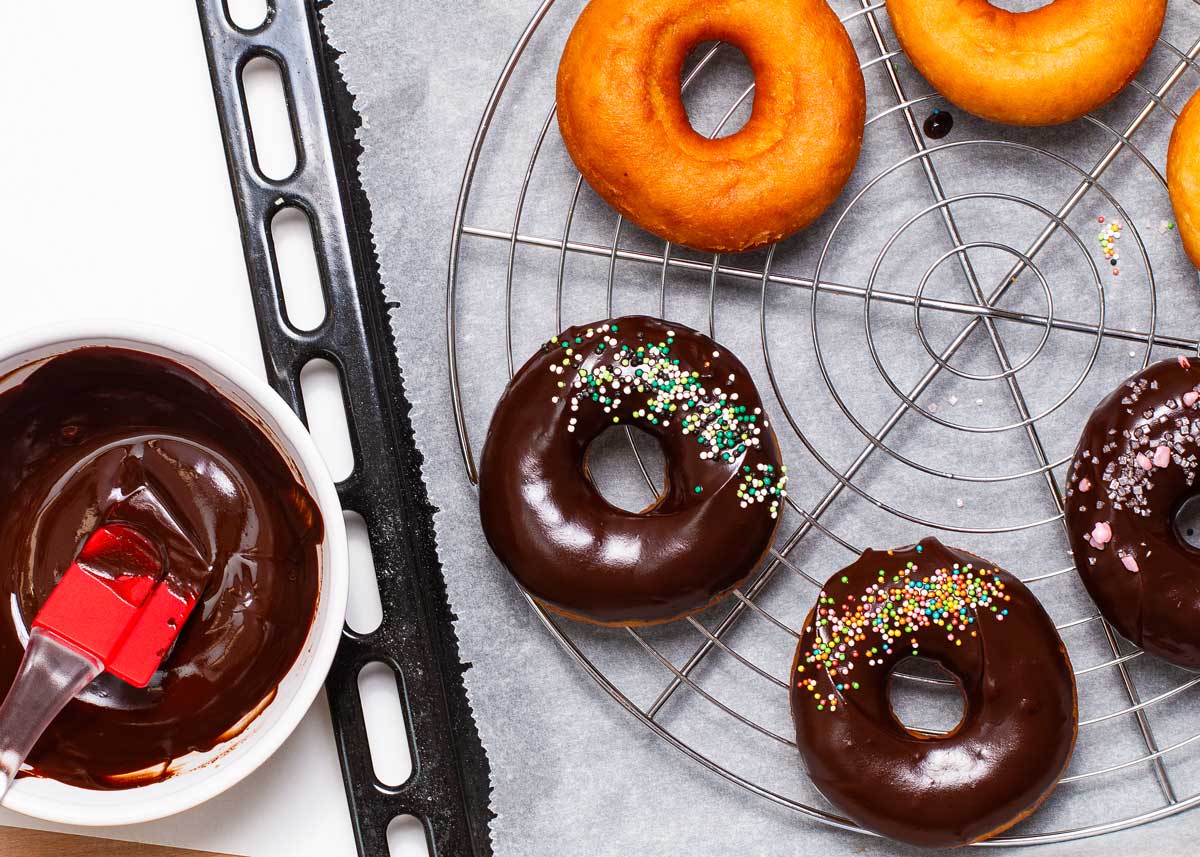Otra opción es hacer donuts de chocolate, para ello debes derretir chocolate negro y de cobertura y echar por encima de cada donuts una vez estén fríos. Dejamos reposar y ¡a comer!