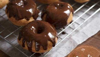 - Luego cogemos el donut boca abajo, lo sumergimos hasta la mitad en el chocolate, dejamos que cuele unos segundos y giramos rápidamente, y los vamos poniendo a secar sobre una rejilla.
