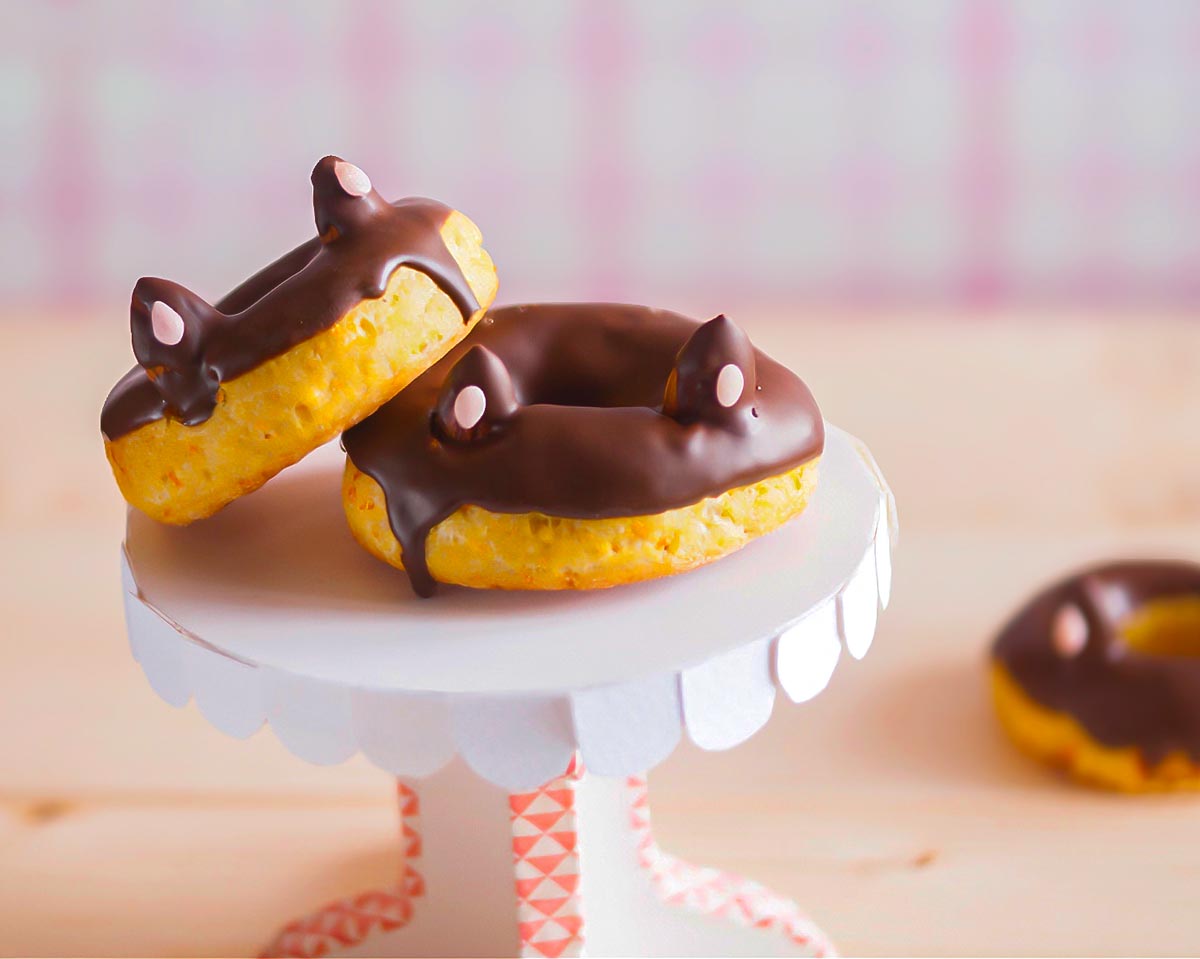 Estos donuts con calabaza son verdaderamente exquisitos y con las orejitas de almendras ¡son divertidísimos!