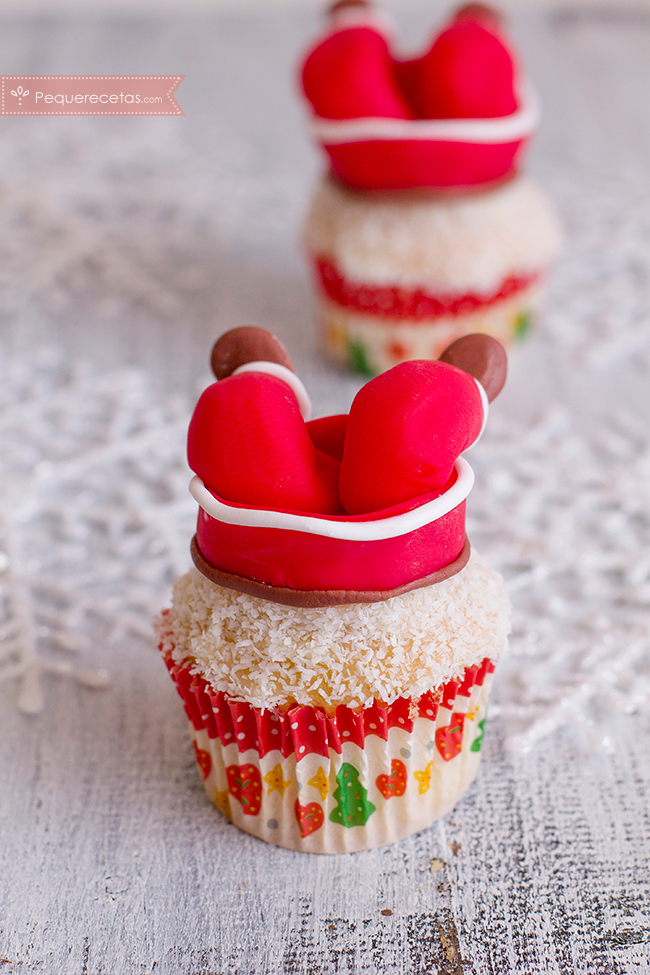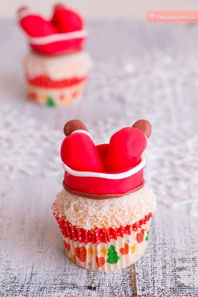 ¿Escucháis?… ¡Se oyen los cascabeles de los renos de Papá Noel! Seguro que habéis sido muy buenos y os van a traer muchísimas cosas pero… ¿y si invitamos a Papá Noel a desayunar estos graciosos cupcakes? ¡Segurísimo que le encantan!