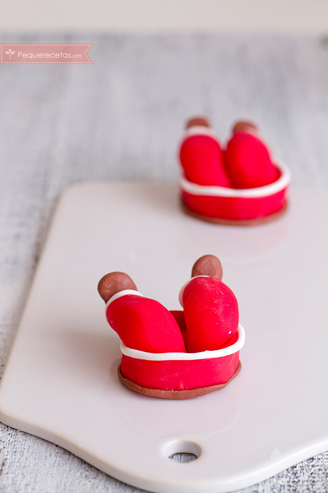 - A continuación volvemos a cortar dejando las piernas de Papá Noel, una más cortita que la otra (con muy poca diferencia).