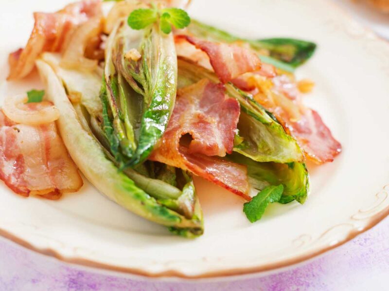 Si quieres llevar tus endivias a la plancha al siguiente nivel, una excelente opción es acompañarlas con bacon crujiente. La combinación del toque tostado de las endivias con la grasa y el sabor intenso del bacon es simplemente irresistible.
