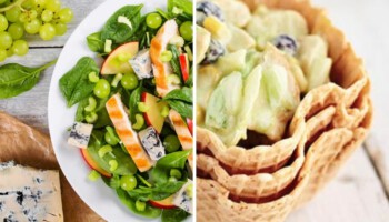 Esta ensalada de espinacas con pollo es muy completa porque además de pechuga de pollo a la plancha, lleva queso azul, uvas y manzana, una mezcla de sabores increíble que te encantará.