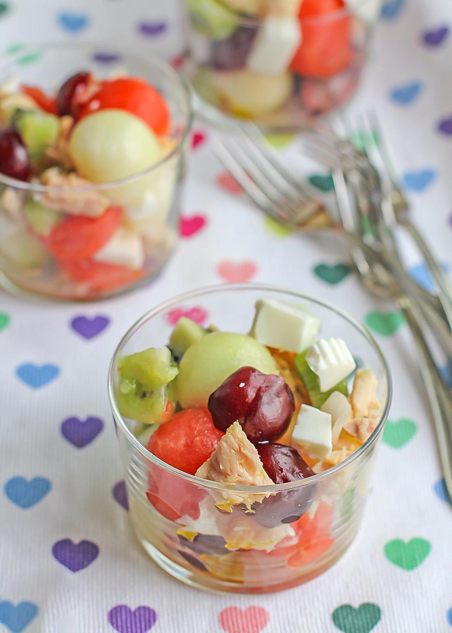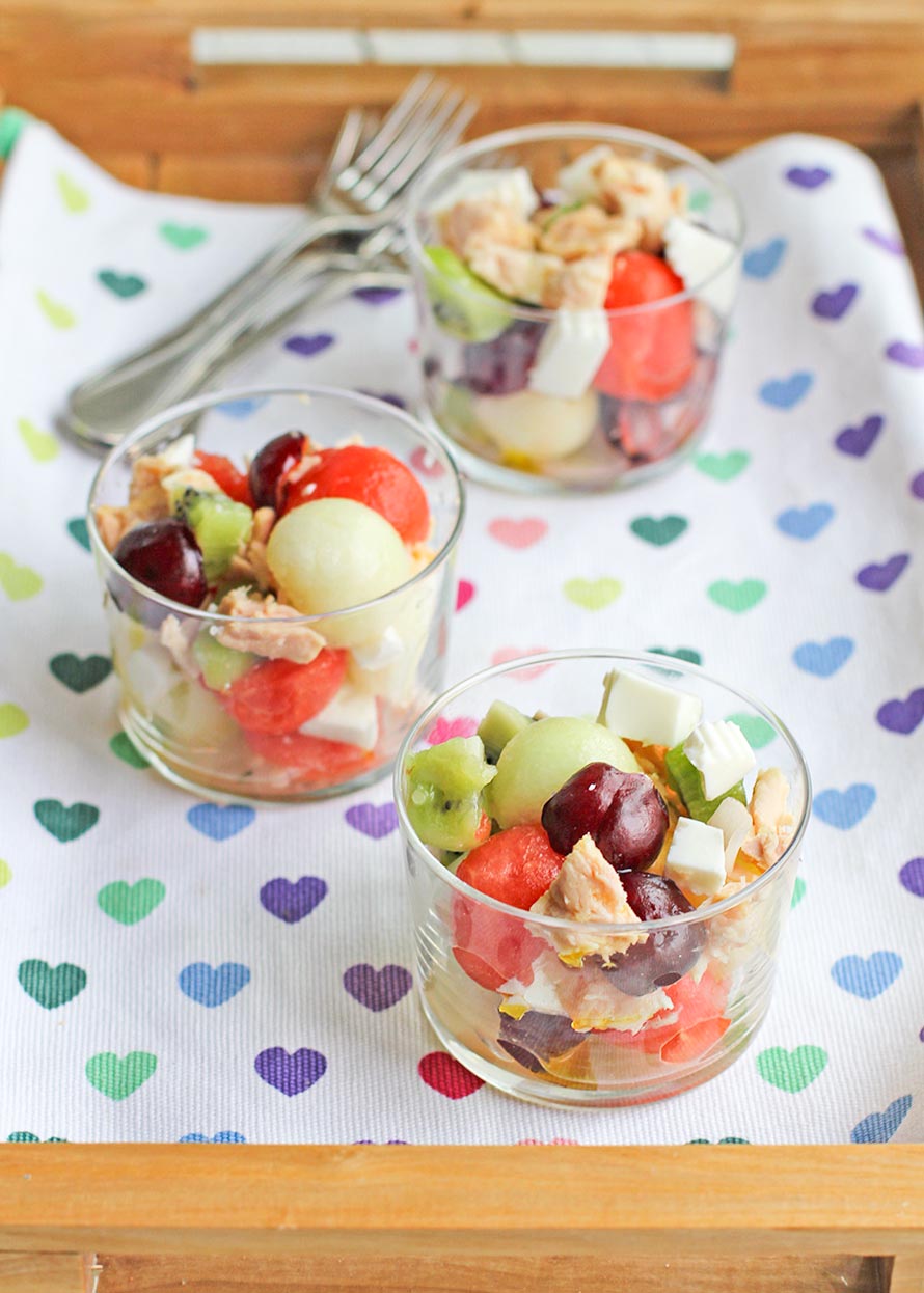 Cómo hacer ensalada de frutas con atún y queso fresco