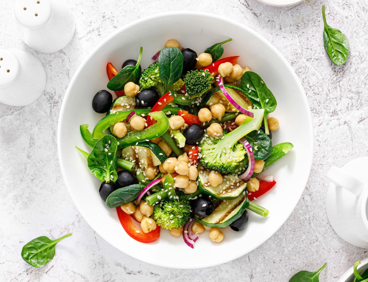 No hay una ensalada de garbanzos más healthy que ésta, con verduras como el brócoli o el calabacín a la plancha. Acompáñala con pimientos y cebolla para aportar el toque crunchy y disfrutarás a la vez que comes sano.