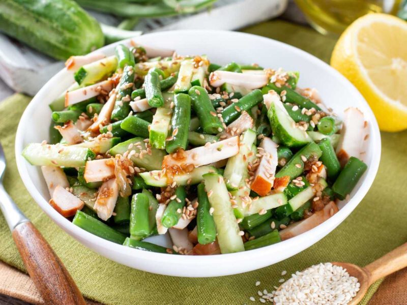 La ensalada de judías verdes con pollo es una opción fresca y ligera, perfecta para cualquier comida del día. En esta receta, combinamos judías verdes crujientes con tiras de pollo y otros ingredientes que aportan sabor y textura, como el pepino. Es ideal para aquellos que buscan una comida rápida y saludable.