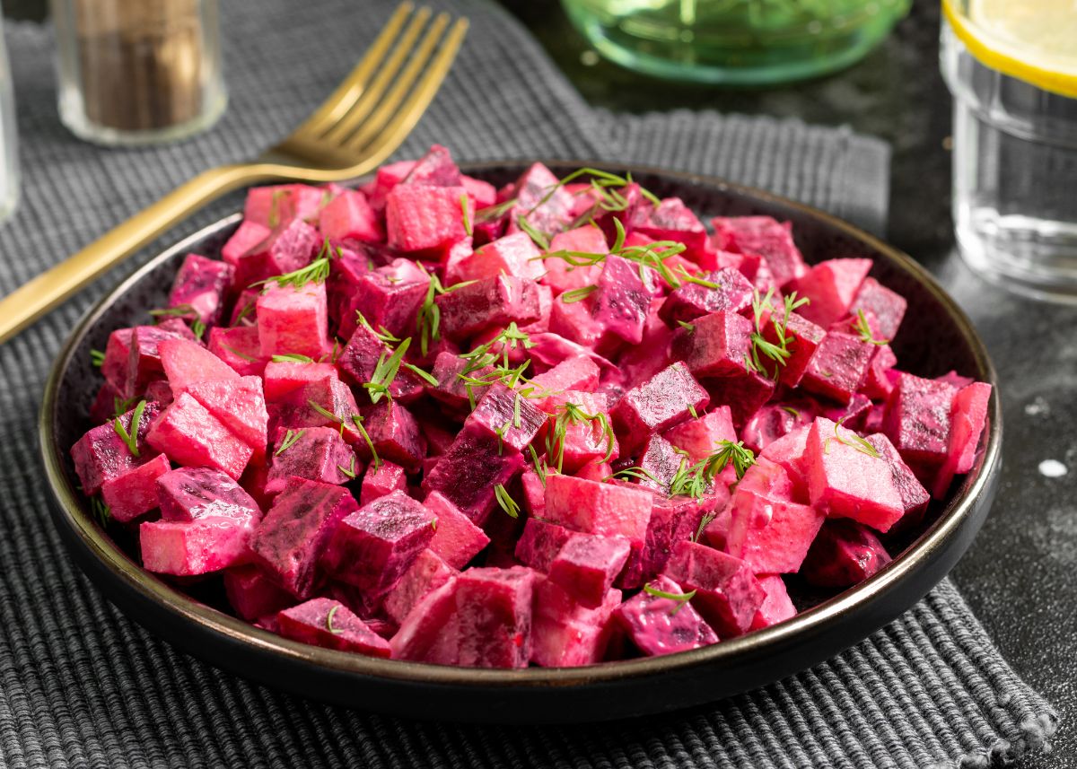 Ensalada de remolacha con vinagreta de mostaza