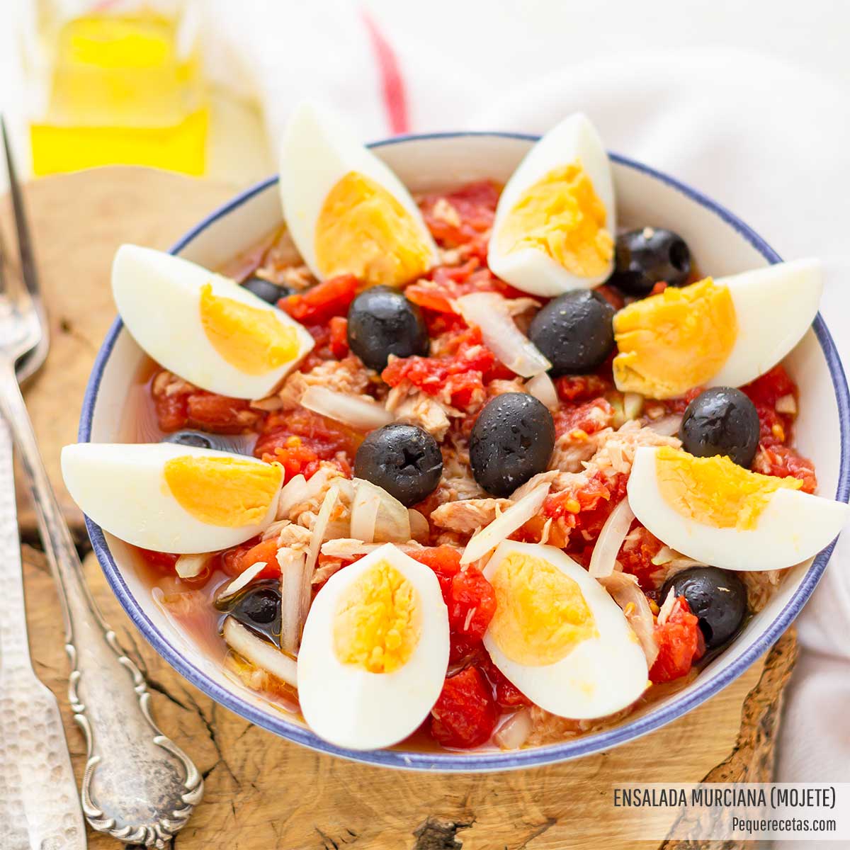 Si alguna vez habéis estado en Murcia habréis probado su ensalada más tradicional, la Ensalada Murciana, como la llaman allí, aunque también se conoce como Mojete Murciano y en algunos sitios como Moje Murciano, ya que esta receta también se ha extendido a otras zonas de La Mancha.