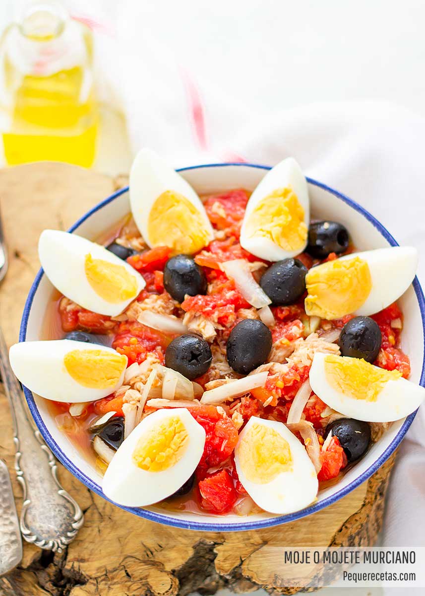 Esta ensalada típica de la Región de Murcia y también de algunas zonas de La Mancha, también se conoce como Moje o Mojete Murciano.
