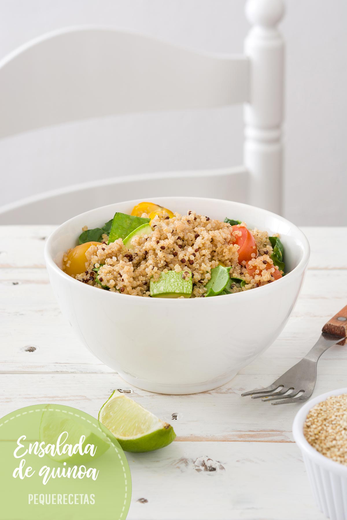 Preparación: Cocinamos la quinoa siguiendo las instrucciones del fabricante. Ponemos en un bol y mezclamos con las verduras muy picaditas. Regamos con aceite de oliva y salpimentamos.