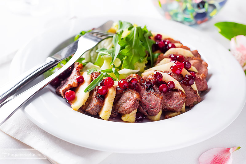 Preparamos los magrets de pato siguiendo esta receta> magret de pato con salsa de arándanos