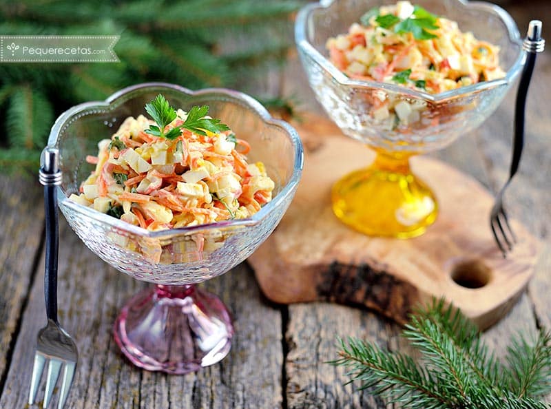 Cómo hacer ensalada navideña con palitos de cangrejo