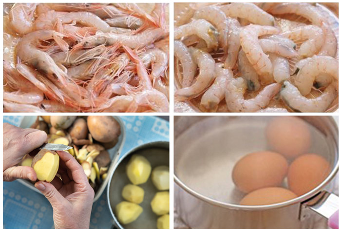 Es fundamental utilizar patatas para cocer para que esta receta sea un éxito. Las mejores patatas para cocer son las de las variedades Kennebec, Monalisa, Buffet, Spunta, Flamenco, Jaerla o Red Pontiac. En particular esta última es la más indicada para la receta de ensaladilla de gambas, porque es la variedad que mejor aguanta la refrigeración una vez cocinada.