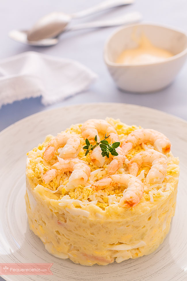 Como toda receta tradicional, también de recetas de ensaladilla de gambas hay muchísimas, cada cocinero puede dar su versión. Hay quienes simplemente reemplazan el atún de la ensaladilla rusa por las gambas, nosotros preferimos esta receta con pocos ingredientes para apreciar a fondo el sabor de las gambas.