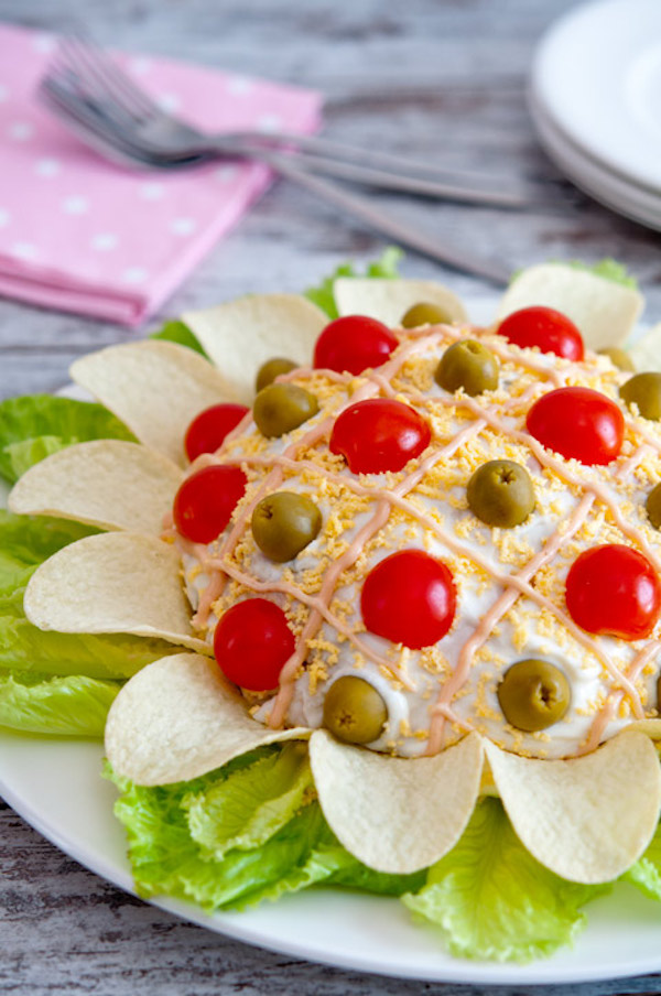 Otra opción que nos encanta es esta ensaladilla rusa en forma de flor.