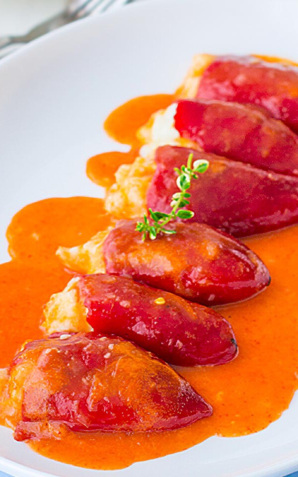 Otro aperitivo que puedes preparar de forma anticipada son estos pimientos del piquillo rellenos de bacalao. Con ellos podemos dar entrada a nuestro plato principal, tanto si es de carne como de pescado.
