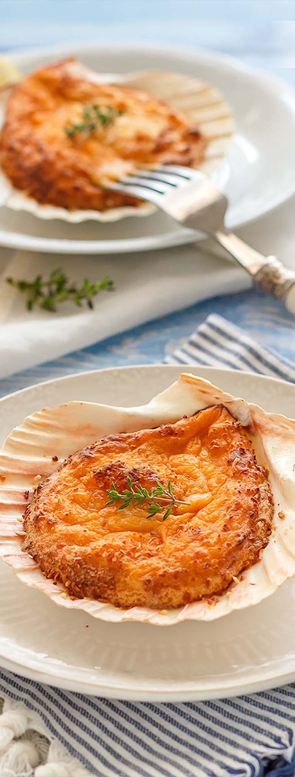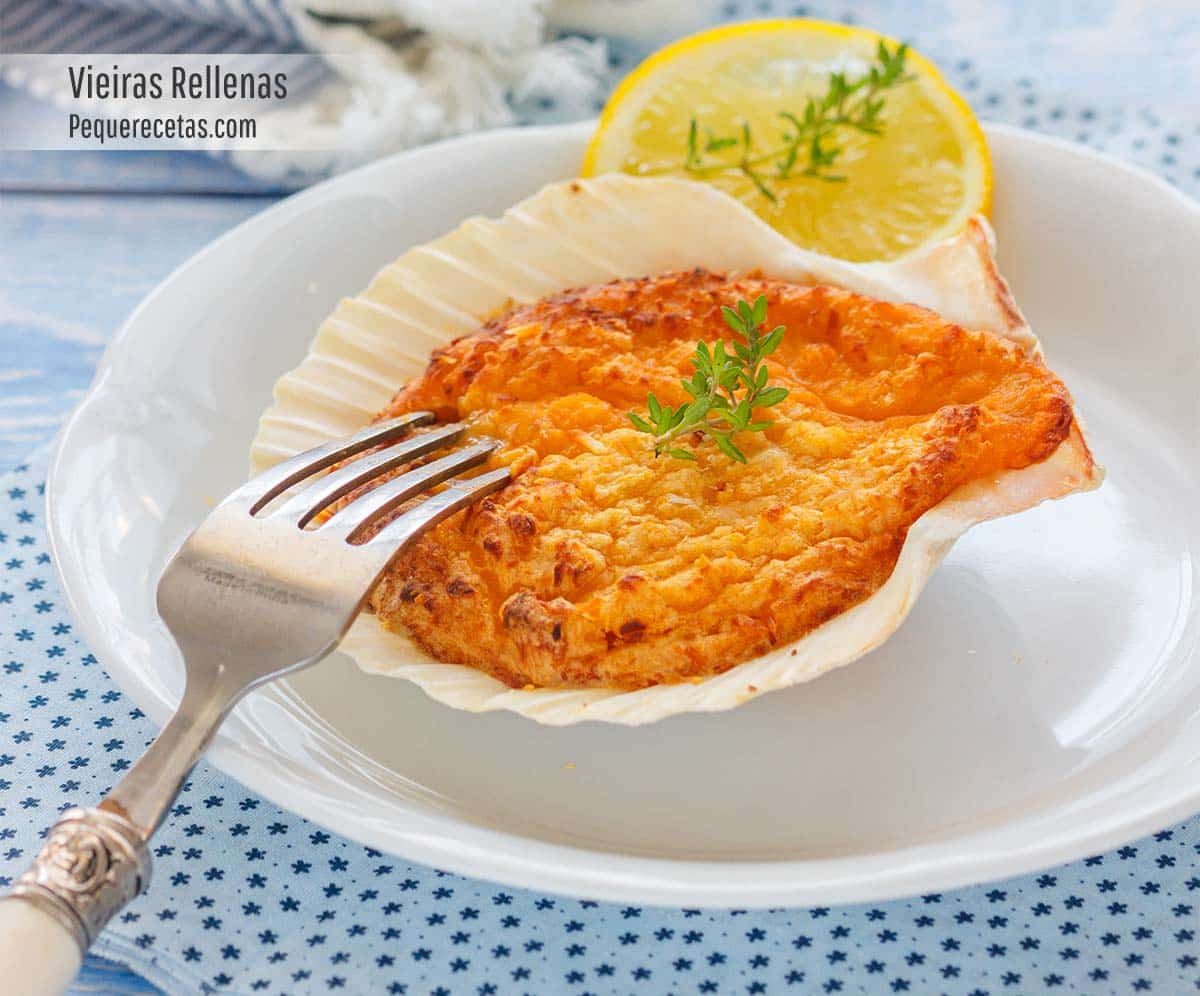 En general gambas, berberechos al vapor, y todos los mariscos, son muy típicos de estas fiestas, pero a nosotros nos gusta especialmente aprovecharlos en recetas calientes, antes de los platos principales, como estas vieiras al horno, rellenas de pescado y bechamel ¡deliciosas y muy fáciles!