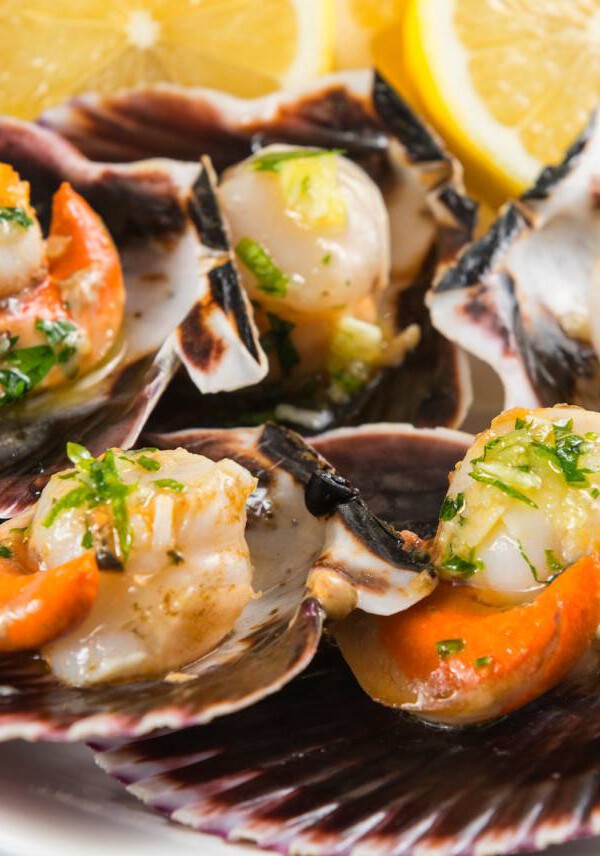 Otra opción estupenda y que además se prepara en poquísimo tiempo son las zamburiñas a la plancha, que también puedes preparar con vieiras: