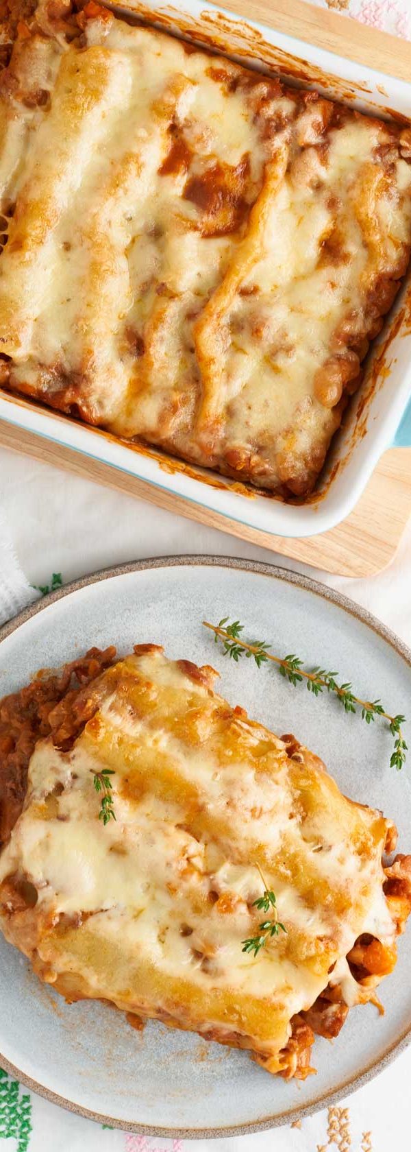 Para una versión vegetariana, puedes sustituir la carne picada por lentejas cocidas o por una mezcla de verduras picadas como zanahoria, apio y champiñones, que ofrecen una textura similar y absorben bien los sabores de la salsa.