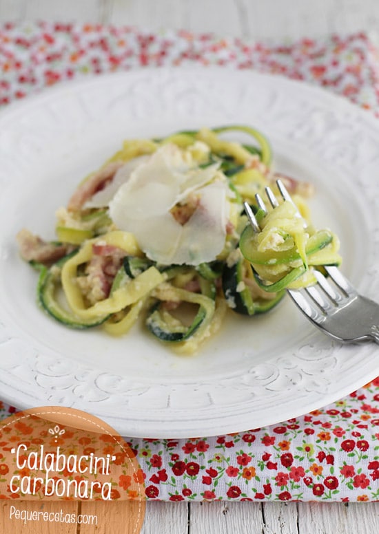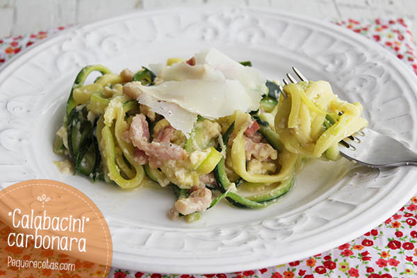 Estos espaguetis de calabacín a la carbonara están riquísimos, y el calabacín tiene una textura y un sabor muy suaves, por lo que a los peques les suele gustar bastante. Seguro que guardáis esta receta entre vuestras favoritas, como la tortilla de calabacín.