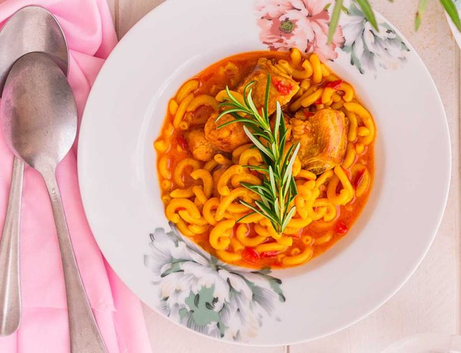 Cómo hacer fideos en cazuela con costillas y salchichas