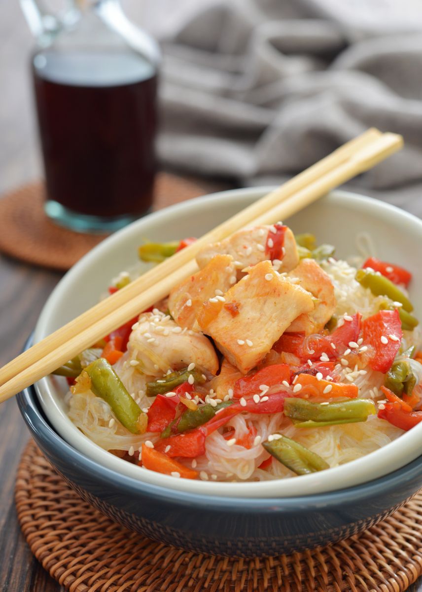 Beneficios nutricionales de los fideos de arroz con pollo y verduras