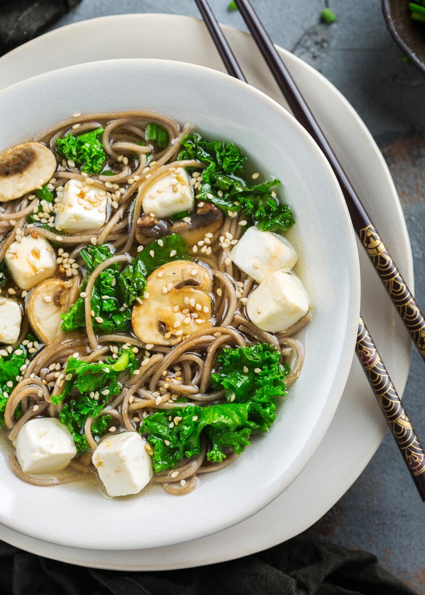En sopa también están muy buenos, en particular la sopa miso de la que dejamos la receta más abajo. También existen variantes del ramen, la sopa de fideos japonesa, en los que puedes usar los fideos japoneses de trigo sarraceno.