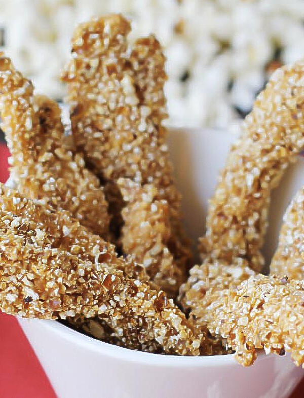 Aunque aquí el rebozado se hace con cereales, también puedes probar otras alternativas de rebozado crujiente para estos fingers o dedos de pollo, como las palomitas de maíz, o incluso los kikos, que te enseñamos también más abajo.