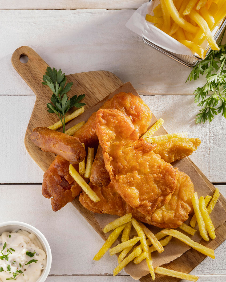 La receta de Fish and Chips, o lo que es lo mismo, el pescado frito con patatas, es el plato más popular de la gastronomía británica, donde es habitual ver a sus habitantes degustando este plato, bien en alguno de los populares chippy o chip shop (nombre común para referirse a los establecimientos donde se sirve el fish and chips) o, si el tiempo acompaña, pidiéndolo take away y dando un paseo por la costa.