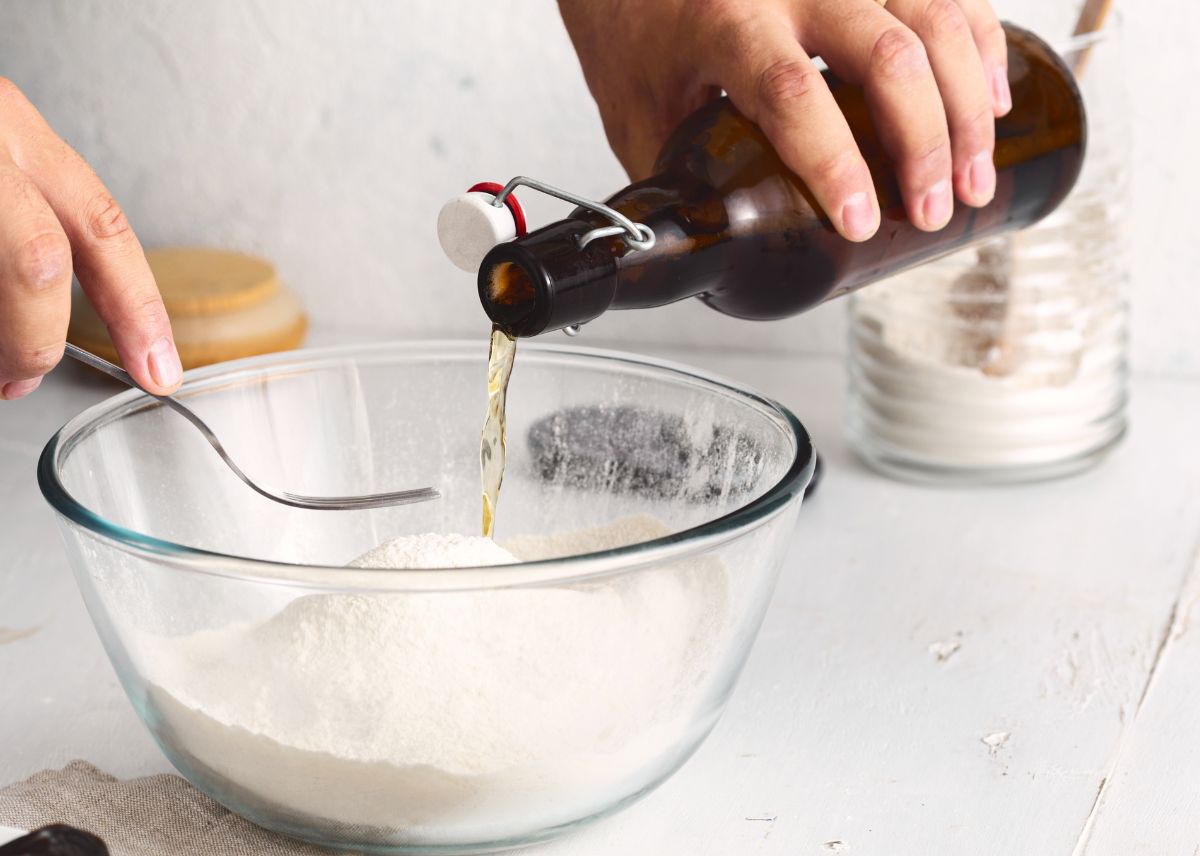 - En un bol, mezcla la cerveza con la harina y la maicena.
