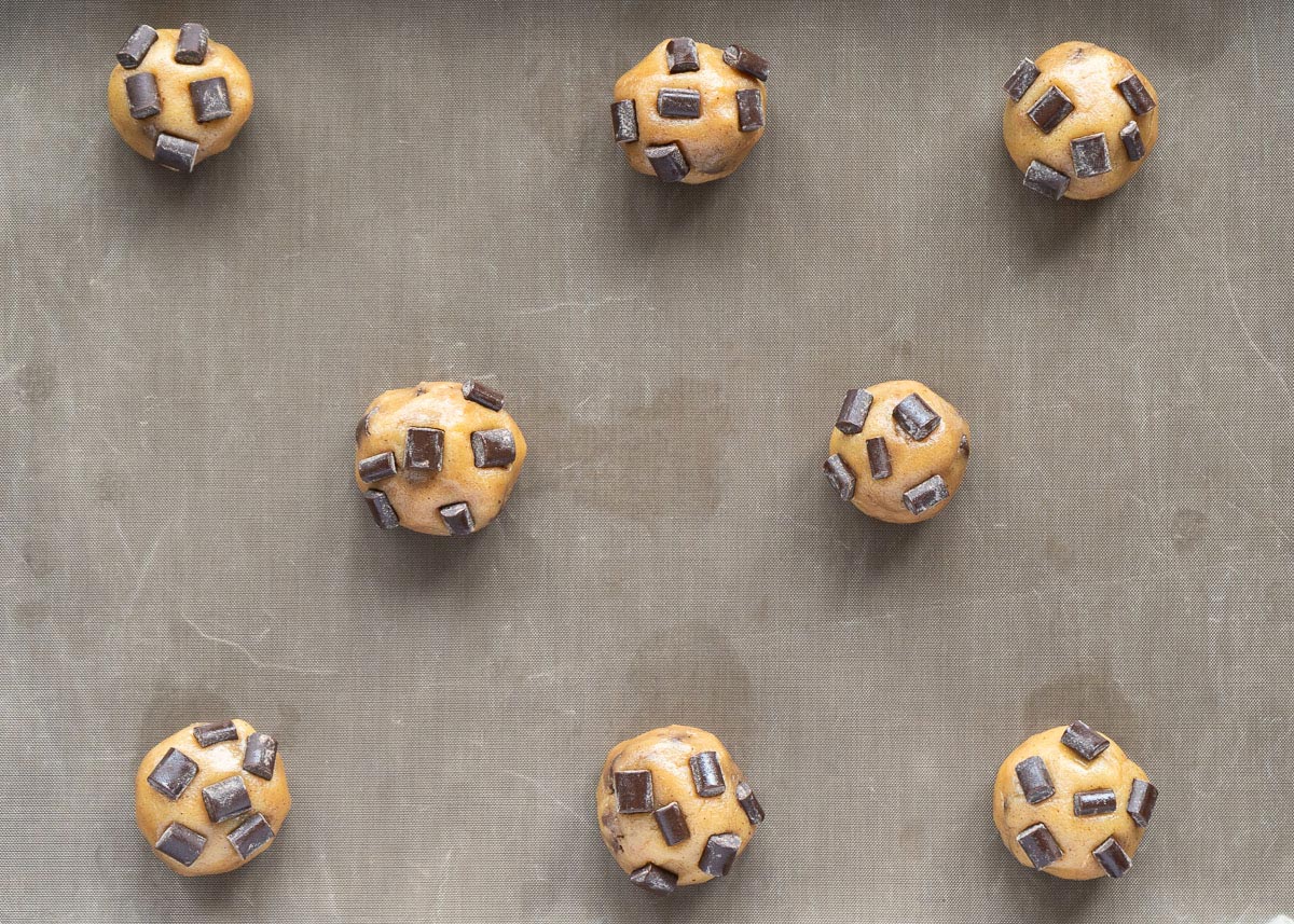 - Espacio entre las galletas: Deja suficiente espacio entre cada porción de masa en la bandeja para hornear. Las galletas se expandirán mientras se hornean.
