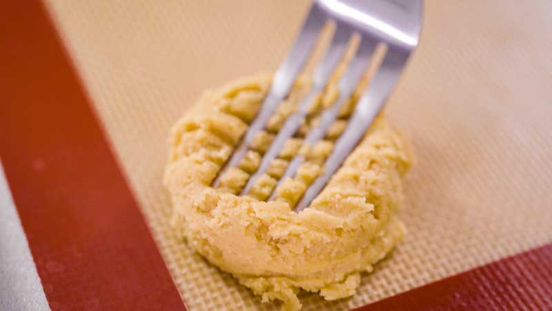 - Aplasta las bolitas primero con la mano y después ligeramente con el tenedor para hacer un diseño de rayas o rejilla si las cruzamos.