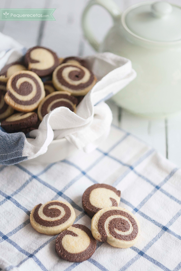 Hoy se nos ocurrió hacer estas galletas de vainilla y chocolate en espiral que nos recuerdan a unas que comíamos de pequeñas y que preparaba mi tía.