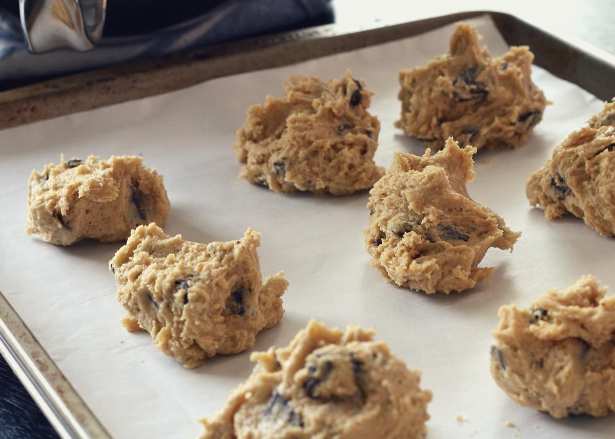 - Forramos una bandeja con papel de horno, y con la ayuda de dos cucharas vamos poniendo porciones de masa, separadas entre sí, procurando que nos queden bastante redondeadas. Podemos hacerlo más fácilmente con una cuchara para helado como esta.
